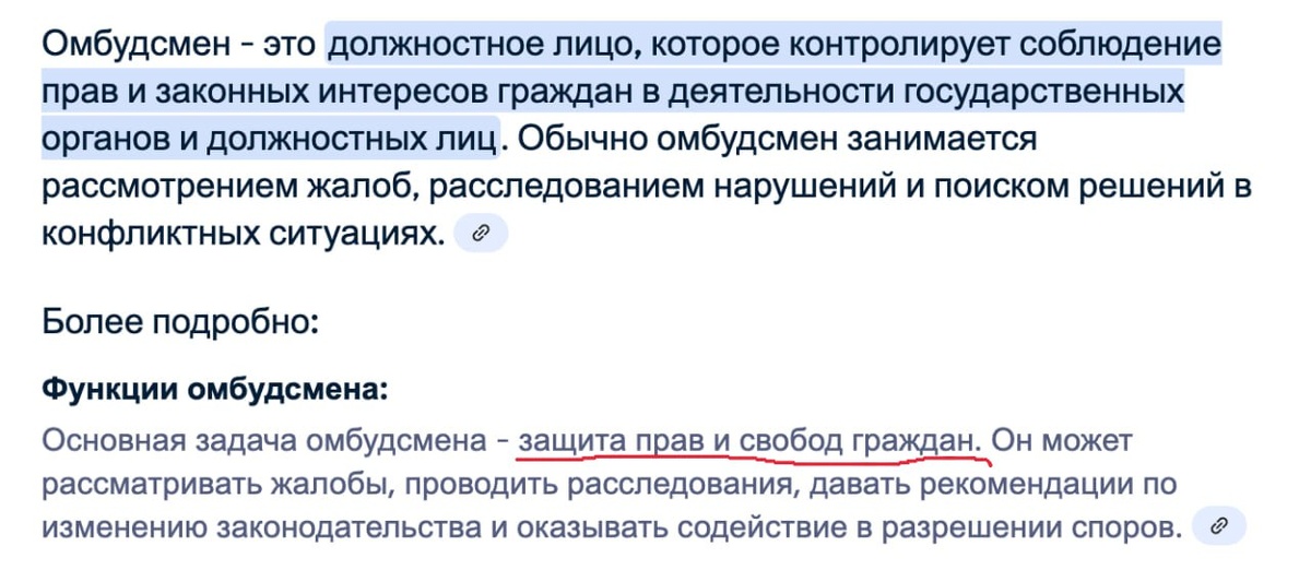 В ответ на пост А помните времена, когда слово "омбудсмен" не было ругательством, уполномоченный по правам человека не призывал писать доносы и должность была полезная?