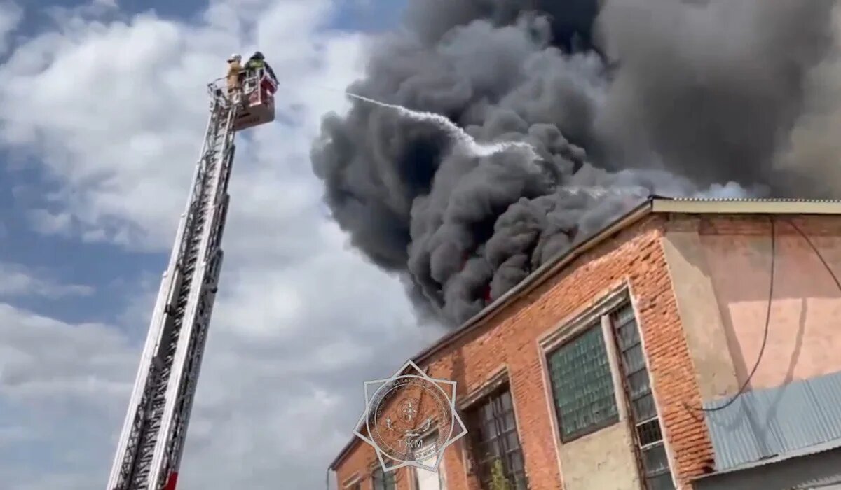 Большой пожар охватил молочный комбинат в Уральске (ВИДЕО)
