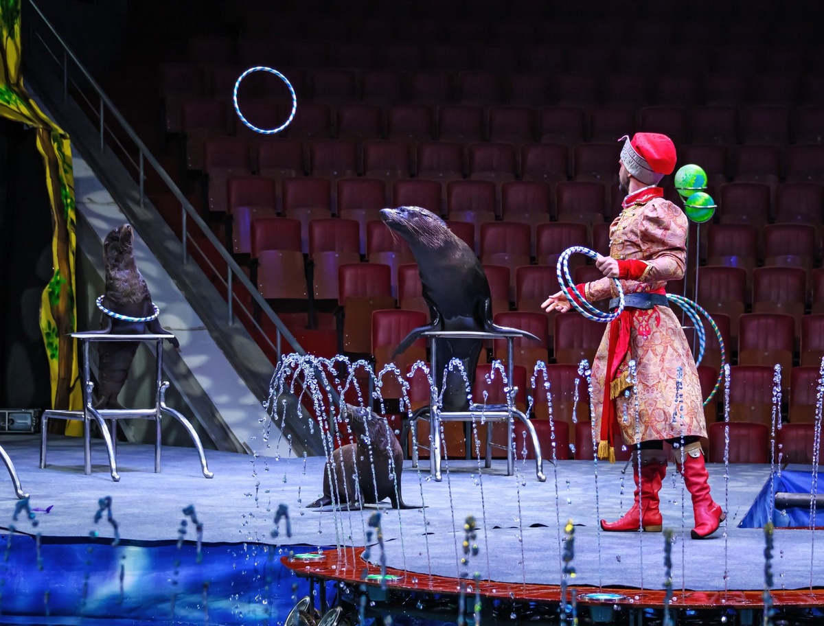 Премьера шоу «Царство фонтанов» (0+) от Цирка на воде состоялось в Нижнем Новгороде 2 августа. На арене нижегородского цирка имени Маргариты Назаровой выступили свыше 50 артистов, приехавших к нам из разных уголков страны. В двухчасовую программу вошли 25 номеров с участием воздушных гимнастов, акробатов, танцоров, клоунов и силачей. Зрители увидели номера с попугаями, обезьянами, крокодилами, морскими котиками и другими животными. https://www.nnov.kp.ru/daily/27734/5123973/