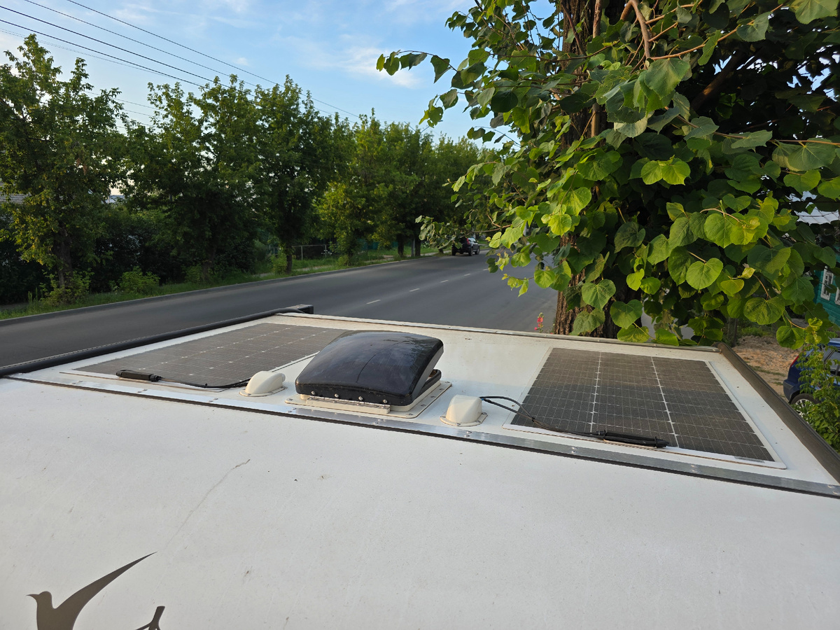 В 2024 году стоял АКБ на 100Ач. В отсутствие солнца его хватало на пару дней. От электричества работает свет и холодильник, заряжаются два ноутбука + телефоны + мелкие гаджеты.