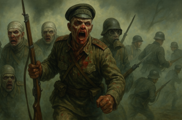 Но враг просчитался. После газового удара германская пехота — свежая, подготовленная, в респираторах - пошла в атаку. Они думали, что просто займут пустые траншеи. Но из зелёной дымки смерти поднялись фигуры, которых невозможно было описать логикой.