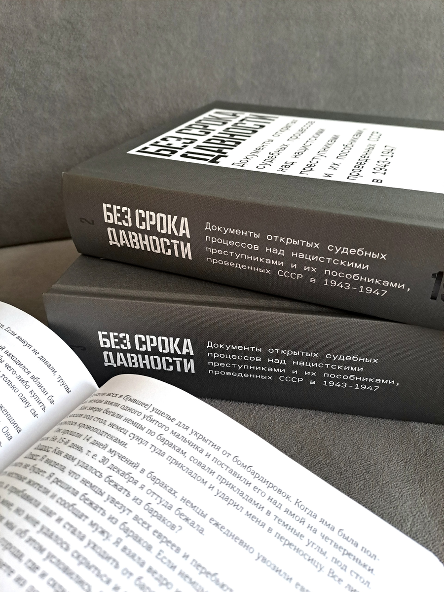 В 2025 году в рамках издательского проекта Фонда «Связь эпох» «Без срока давности» Росархив и Управление регистрации и архивных фондов ФСБ России при поддержке Фонда президентских грантов подготовили трехтомный сборник «Документы открытых судебных процессов над нацистскими преступниками и их пособниками, проведенных СССР в 1943–1947 гг.». В сборник вошли ранее засекреченные документы из Центрального архива ФСБ, а также материалы из РГАИ, РГАСПИ, ГА РФ, РГВА, РГАКФФД, АВП РФ, демонстрирующие подготовку и проведение 10 открытых судебных процессов в Краснодаре, Харькове, Смоленске, Брянске, Ленинграде, Николаеве, Минске, Киеве, Великих Луках и Риге. Собранные в ходе процессов доказательства зверств захватчиков и вынесенные им приговоры заложили основу осуждения нацизма, результатом которой стало судебное признание в XXI веке массовых убийств советских мирных граждан и военнопленных на территории СССР геноцидом. Том 1. 1941–1943 Том 2. 1944–1946 Том 3. 1946 Ответственный редактор — А.В. Юр