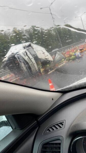 На трассе М-2 возле Серпухова опрокинулся грузовик с арбузами