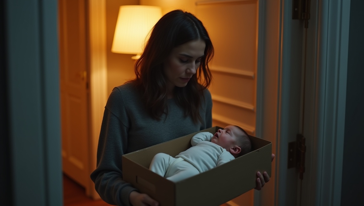 Руки задрожали, когда она откинула плед. В коробке лежал новорожденный — крошечный, красный, сморщенный. На нём была белая распашонка и подгузник. Рядом лежала записка, написанная знакомым почерком:
