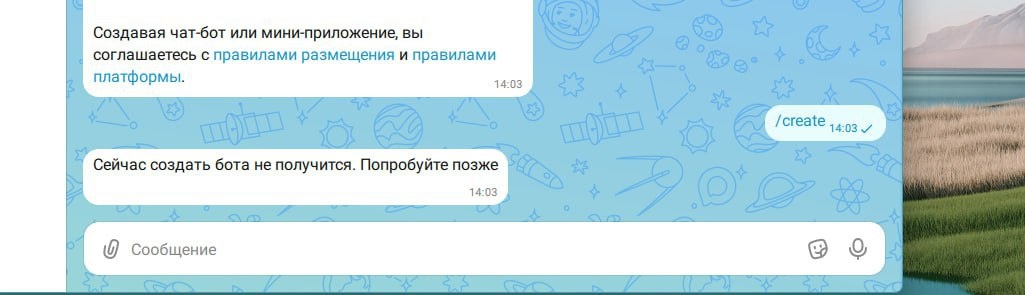 MAXимальная ботификация Сегодня нам пришла задача сделать на мессенджере MAX очень простого бота. Не удалось. Подробности на скрине. Поддержка ответила, что создание ботов не работает — ждите и все заработает. Наш сотрудник нашел issue, судя по которому уже со 2 июля ботов создавать нельзя... Мы снова хотели сделать плохого и дорогого бота нашему клиенту, а нас лишили такой прекрасной возможности. Я остался недоволен. На самом деле — жду пока починят. Теперь уже стало интересно сколько времени эта починка может занять...