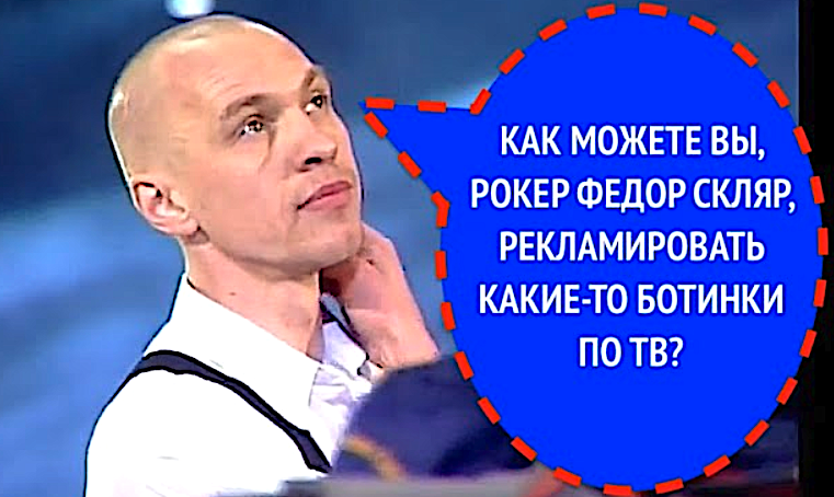 «Как можете вы, рокер Александр Скляр, рекламировать какие-то ботинки по ТВ?»