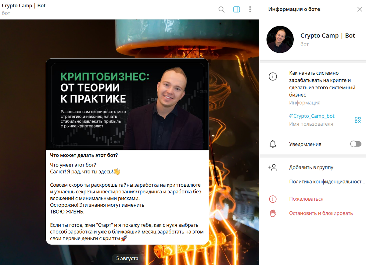 Crypto Camp | Bot — отзывы и разбор: заработок на автомате или уловка для потерь?