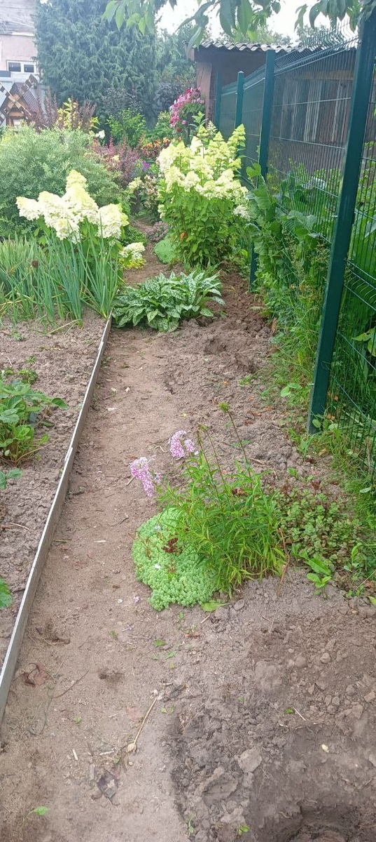 Доброго вечера 🌿🌸 Начала заниматься новым миксбордером🌸🌸. Флоксы от забора переехали в деревню и я открыла для себя полёт фантазии 😊. Потихоньку освобождаю все от сорняков и начала готовить посадочные ямы для туй🌲. Оказалось все не так просто... Земля ужасная, копать невозможно, не сломать бы лопату🤦. Со вчерашнего дня пошел дождь и все дело у меня встало, с одной стороны даже хорошо, может копать станет полегче)). Одну яму я осилила, наносила плодородный грунт, хвою, мох, заложила удобрения, микаризу. Перенесла один хвойник из другого цветника. Вообщем работы много😊, но такая работа в радость!