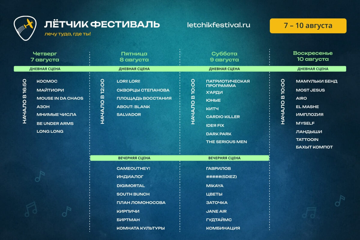Уже в четверг, 7 августа, встречаемся на «Летчик Фестиваль 2025