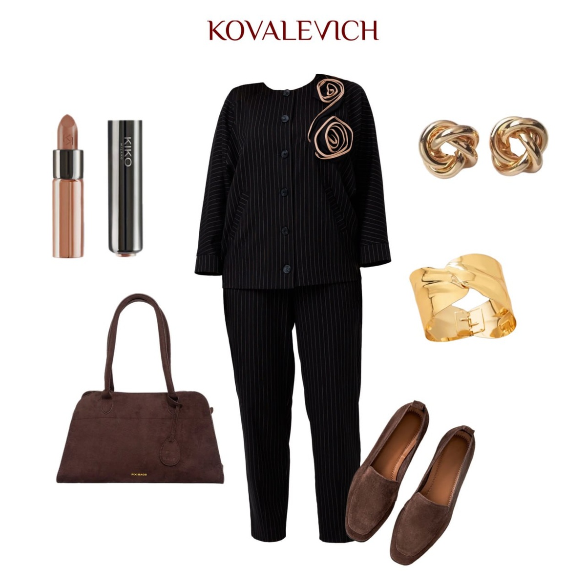 Готовый образ с костюмом из новой коллекции Дамы, как вам такой образ с трендовым оттенком? 🍫 Костюм брючный уже доступен на Wildberries с 48 по 60 размер🤩