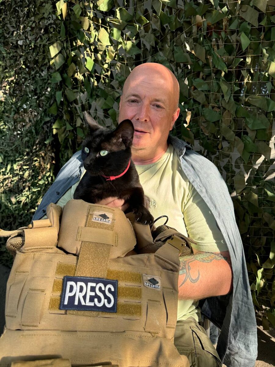 Беляш настоящий боевой кот одного из известных подразделений. Родом он из под Бахмута. Переезжает с бойцами из одной горячей точки в другую. Имеет ранения. Один из осколков до сих пор торчит его чёрной подпаленной шкуре. На звуки войны, ставшие для него привычными, не реагирует. Флегматично наблюдает и за проплывающими мимо вражескими «мотороллерами» Его звериная уверенность помогала нам сегодня в течении съемочного дня. Наверное, в прошлой жизни Беляш был воином.