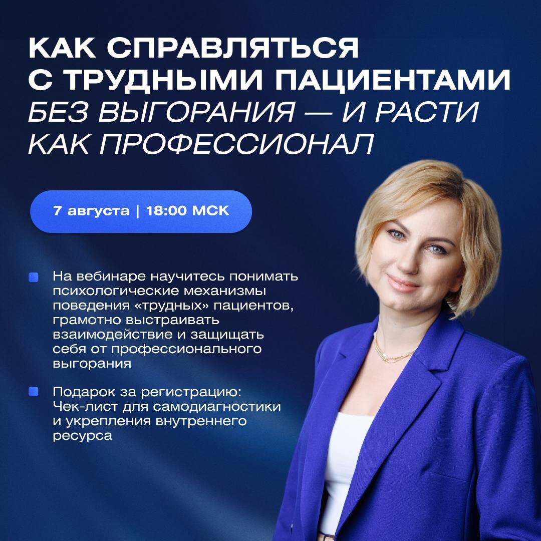 Иногда кажется, что мысли несутся, как поезд без остановок. Наша способность общаться — язык — дала человечеству силу и власть. Но вместе с этим она же стала источником беспокойства и страданий: мы постоянно анализируем, оцениваем, спорим с собой и другими. Врач на приёме часто становится пассажиром этого «поезда» — привычного потока мыслей, реакций и правил общения. Особенно сложно, когда встречаешься с трудными пациентами. Но если взглянуть иначе, за маской раздражения, агрессии или молчания — почти всегда скрывается внутренний конфликт, с которым человеку бывает не справиться в одиночку. На вебинаре «Как справляться с трудными пациентами — без выгорания и с профессиональным ростом» мы вместе научимся останавливаться, «выходить из поезда» автоматических реакций и видеть в собеседнике не только источник напряжения, а человека с историей, страхами и надеждами. Вы узнаете, как считывать эти внутренние конфликты и мягко направлять пациента туда, где ему и вам будет спокойнее и продукти