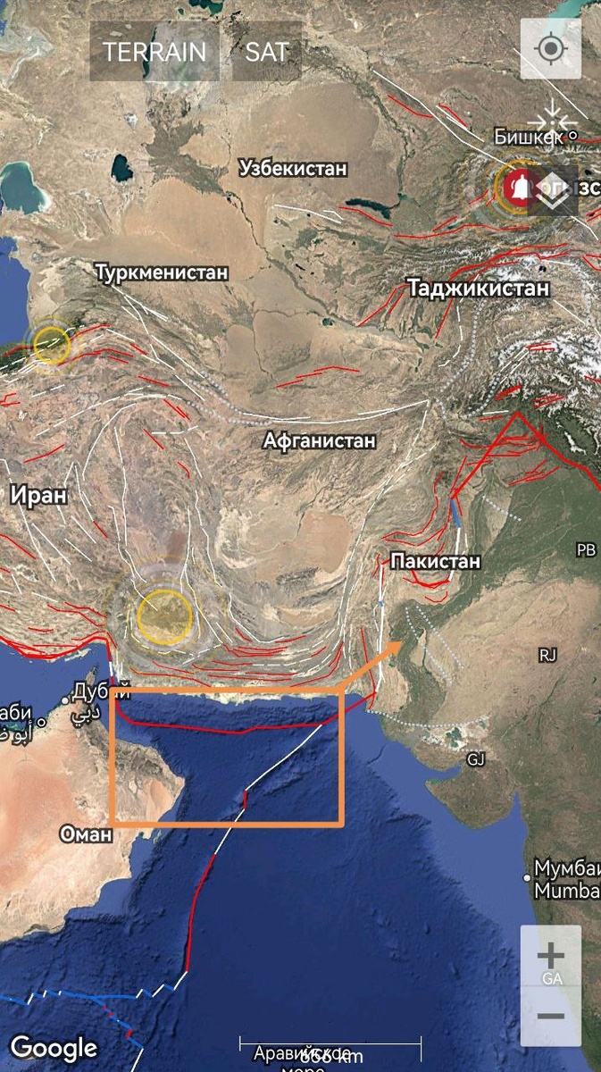 Вот этот трассирующийся "клюв" 👆 от границ Аравийской плиты со смещением на северо-восток потенциально может дать событие с магнитудой до