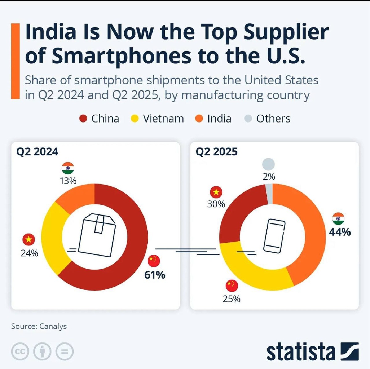 ☄️ Индия вытесняет Китай на рынке смартфонов в США Раньше Китай был главным поставщиком смартфонов для Америки, но теперь его место постепенно занимает Индия. Американские компании все чаще заказывают телефоны у индийских производителей, а не у китайских. Почему так происходит❓ 💙 Санкции и ограничения — США уже несколько лет конфликтуют с Китаем, вводят пошлины и запреты (как в случае с Huawei). 💙 Перенос производств — Apple, Samsung и другие бренды активно строят заводы в Индии, чтобы снизить зависимость от Китая. 💙Выгода для Индии — страна получает новые рабочие места и технологии, укрепляя свою экономику. Что это значит❓ Китай теряет монополию, а Индия становится новым глобальным центром производства электроники. Для США это способ снизить риски и диверсифицировать поставки.