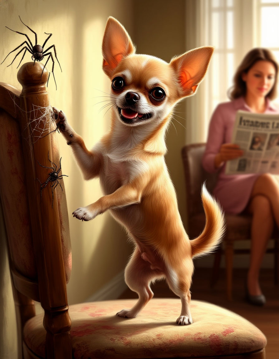 В 10:30 она прошла мимо и сказала: «Ой, паук!» — я залаял громче: «Я знаю! Я уже на месте!».