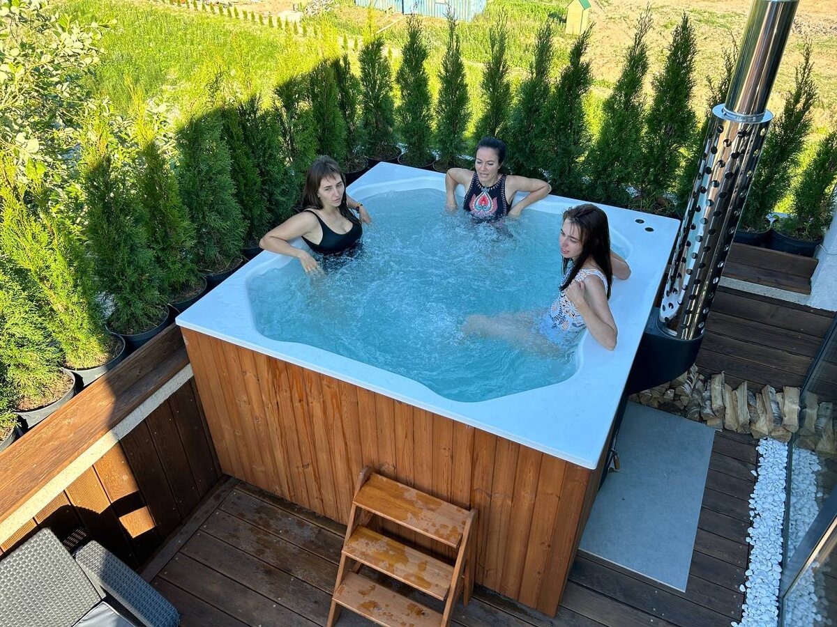 Ретрит центр «АШРАМ» Квадратная купель со встроенной печью Quattro Hot 200 Диаметр: 200 см; Высота: 116 см; Объем: 1500 л; Вместимость: 6 чел. Комплектация: ▪️ отделка светлой термодревесиной ▪️ подсветка ▪️ аэромассаж ▪️ термокрышка ▪️ цвет чаши белый ☎️ +7 (812) 648 - 24 - 10 ☎️ +7 (495) 646-00-24 💻 https://kupeli-rus.ru/catalog