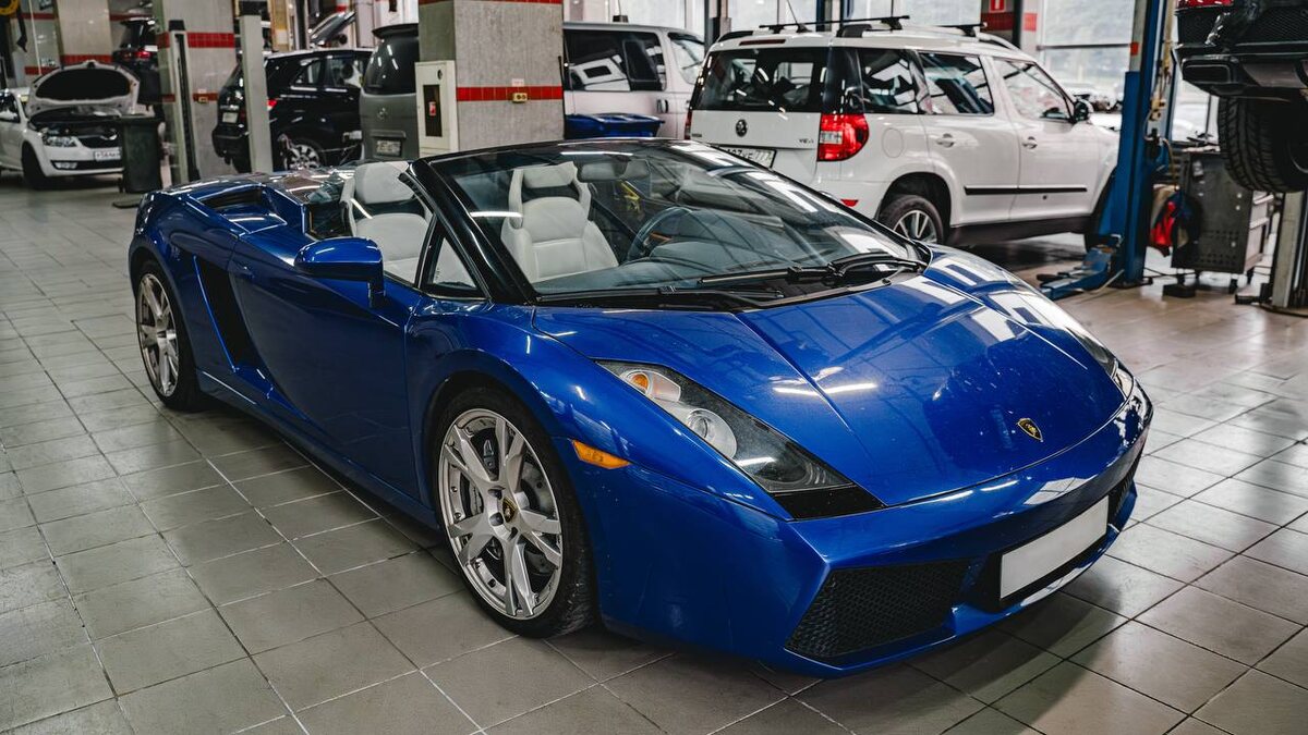 Lamborghini Gallardo Spyder Среднемоторные спорткары Lamborghini Gallardo выпускали с 2003 по 2013, с рестайлингом в 2008 и 2012 годах. Автомобили серии комплектовали двумя бензиновыми атмосферниками конфигурации V10 – 5 и 5.2 л. В паре с ними работали механические коробки передач и роботы (в обоих случаях – 6 ступеней). Спорткары были доступны с задним и полным приводом. В Кволити Моторс привезли Lamborghini Gallardo в версии Spyder – со съемной крышей. Автомобиль 2006 года выпуска с 5-литровым мотором на 520 сил. Кузов окрашен в яркий фирменный синий цвет, который сочетается с белой отделкой салона. Как часто бывает с такими машинами, Gallardo – не единственный автомобиль в коллекции владельца, поэтому на нем он ездит достаточно мало. Наши специалисты провели комплексную диагностику машины и регламентное техническое обслуживание с заменой масла и фильтров двигателя. Серьезных замечаний по автомобилю не было. Ну а мы в свою очередь делимся с вами фотографиями этого легендарного сп