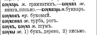 Как я сказал, Зарецкий мой, Под сень черемух и акаций От бурь укрывшись наконец, Живет, как истинный мудрец, Капусту садит, как Гораций, Разводит уток и гусей И учит азбуке детей. А.С. Пушкин "Евгений Онегин" Официальная этимология относит это слово к германским языкам и происхождению от названия дерева "бук". В старославянском: В списке биконсонантных корней сочетаний BK/KB не представлено. Однако, такое сочетание существует, оно присутствует в некоторых словах. Смотреть статью КАБАК https://dzen.ru/a/Z5XZQr1SPwxoX9Yu БУКЫ - BAWKAAJ: Управляющий контур вводит в пространство сдвиг вместе с целями и задачами. Реализация кристаллических алгоритмов проходит через структуризацию с переходом на спектр (во всех 4-х сегментах). Буква - это способ быстрого ввода сдвига в пространство. Смотреть статью РУНА https://dzen.ru/a/Z1uym_d1xywPwJtv БУК-ВАРЬ - соединяющий буквы (в слова). Варит - значит закручивает, вращает вокруг центральной оси. Смотреть статью СВАРА https://dzen.ru/a/ZyLzsR2UkHAm