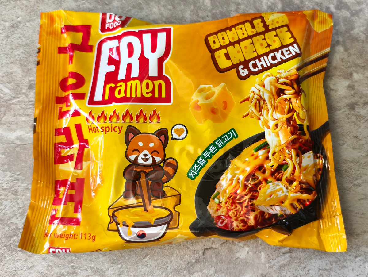 Пробую лапшу fry ramen. Вкус двойной сыр и курица.