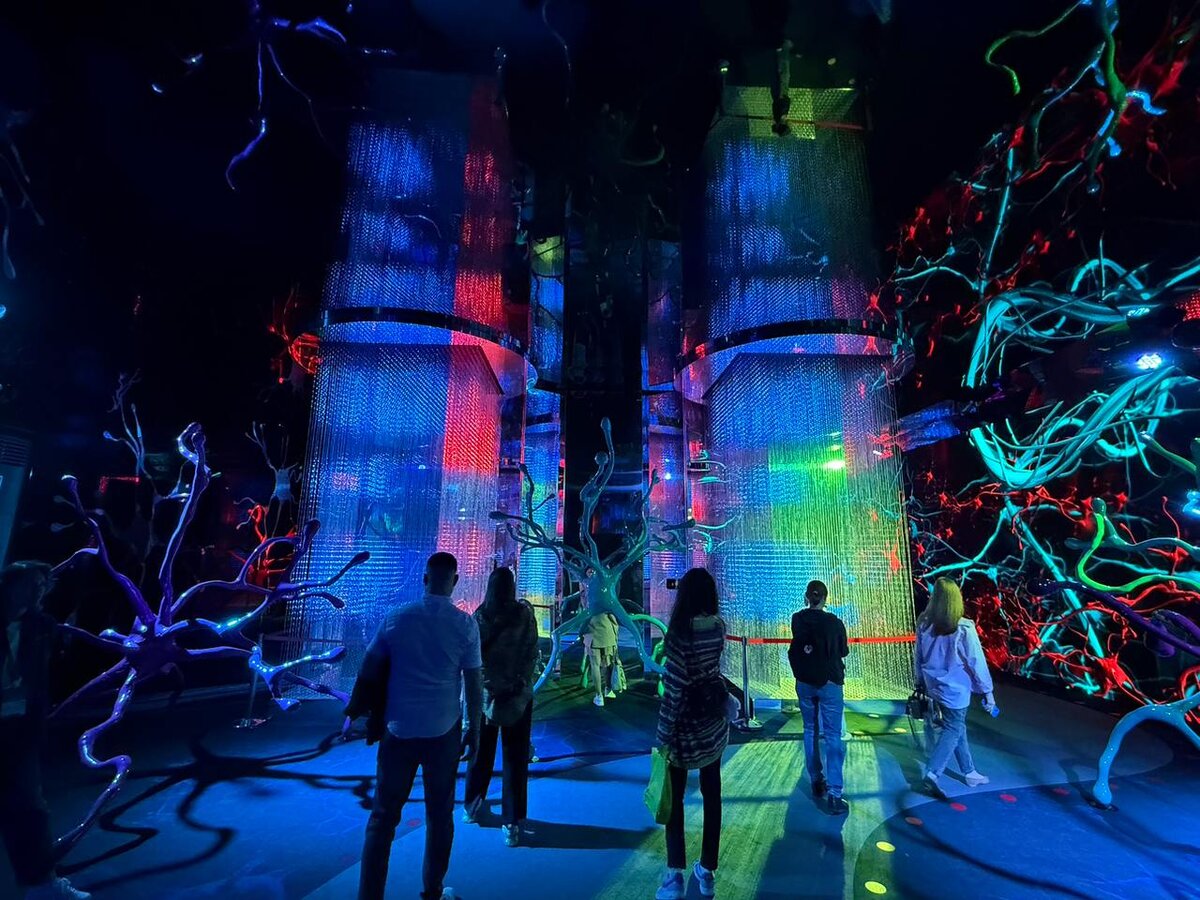 Например, одна из инсталляций — это визуализация нейронных связей. Ты буквально видишь, как мысль рождается, как эмоции запускают импульсы, как всё это связано с гормонами счастья и с тем, как мы живём в городе.