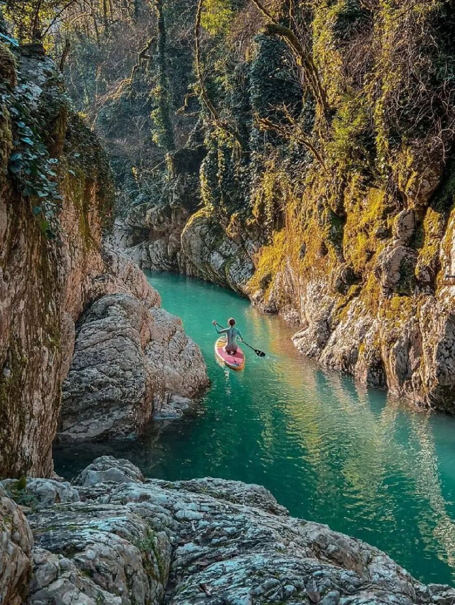Оглавление Каньон Хосты: место, где дышит природа Чертовы ворота: легенда и реальность Почему здесь востребован сапборд? Когда лучше отправиться? Сап-прогулка по каньону Хосты: Чертовы ворота и дыхание скал Сочи – не только пляжи и пансионаты. У этого города есть свой тайный мир – мир зеленой тишины, прохладной воды, нависших скал и теней деревьев. Его нельзя увидеть из окна автобуса. Не почувствуешь, просто гуляя по набережной. Но стоит встать на сапборд – и город исчезает. Остается только ты, вода и дикая природа. Одно из самых живописных мест для такого неспешного, почти медитативного путешествия – каньон Хосты и Чертовы ворота. Название интригующее, виды – завораживающие. А впечатления после – как после хорошей книги: не хочется возвращаться в реальность. Каньон Хосты: место, где дышит природа Каньон находится всего в нескольких километрах от шумного центра, но когда ты попадаешь туда, кажется, что тебя перенесли на сотни километров вглубь Кавказа. Скалы, покрытые мхом, отвесные