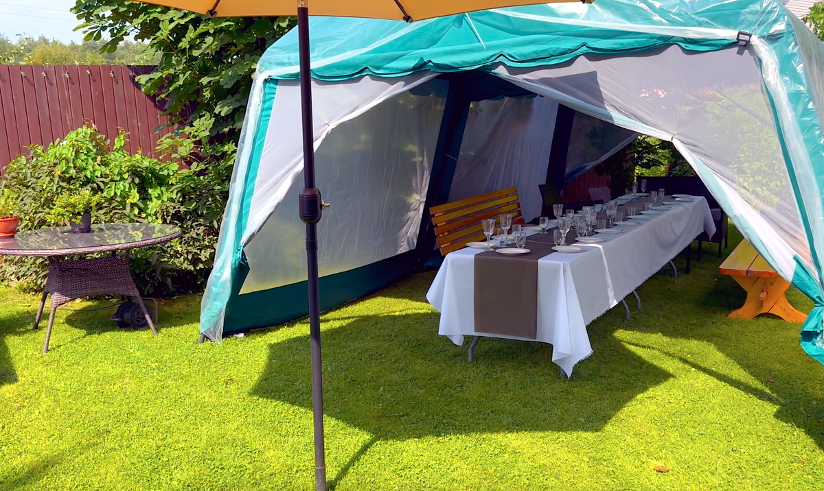 Подготовка к дню рождения всегда — это марафон из заморочек, списков и «а что, если вдруг…». Но когда всё делаешь с душой, ради близких, которых так ждёшь — эта суета превращается в приятное хлопоты. Каждая деталь становится частью тепла. Было невероятно жарко, как будто лето решило перестараться. Поэтому решили собираться только после шести — в надежде, что солнце успокоится. Но оно, видимо, тоже захотело отметить праздник и до самого заката не давало нам охладиться. А ещё дождь был в прогнозе. Пришлось экстренно укрывать тенты плёнкой. Да, выглядело это… скажем мягко, не как в журнале про идеальные вечеринки. Но гости остались сухими а блюда — целыми. Тут моя невестка моментально включила фантазию и организовала гирлянды из шариков прямо поверх пленки. То, что ещё минуту назад выглядело как шатер на рынке 😂, превратилось в что-то напоминающее лёгкий летний праздник с намёком на стиль. Шарики были не просто кстати — они подняли настроение, добавили воздуха и намекнули, что даже дожд