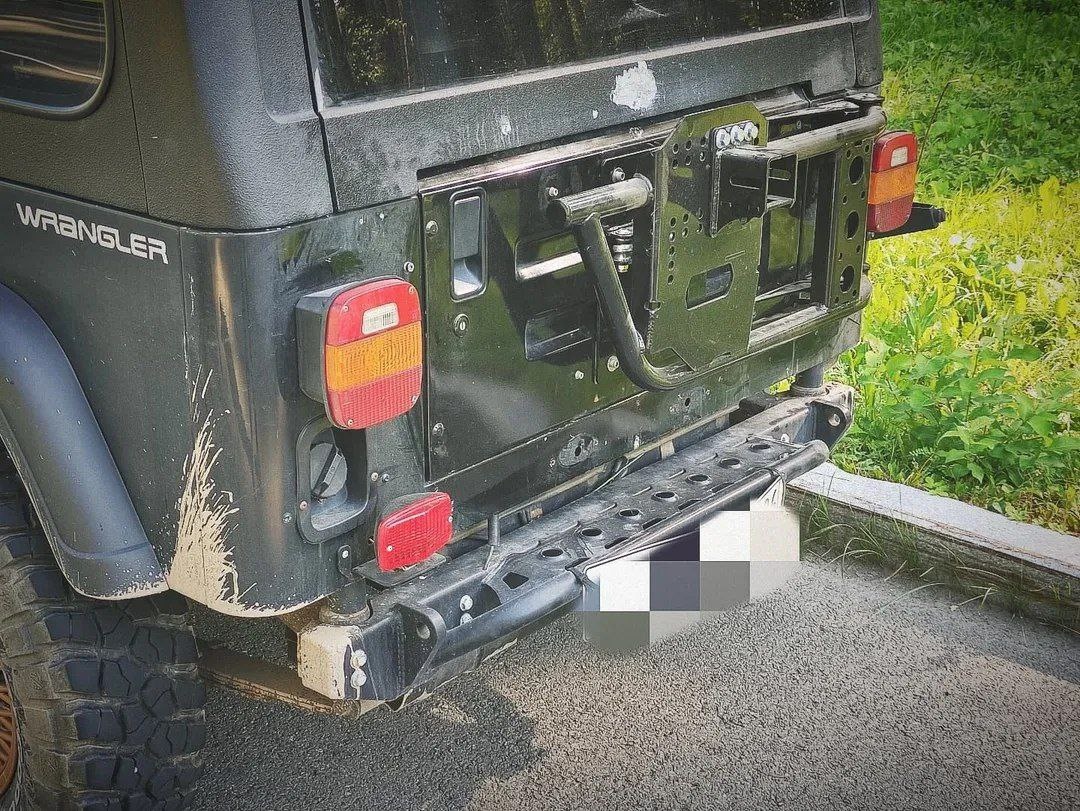 КАЛИТКА ЗАПАСНОГО КОЛЕСА JEEP WRANGLER / JEEP WRANGLER SPARE TIRE CARRIER 👇👇👇 Разжился наконец калиточкой JEEPMASTER под 33 колесо. Сделана из трубы и листа, открывается вместе с дверью родной ручкой на двери. Калитка стоит на кастомных двойных петлях на конических упорных подшипниках. Для установки калитоса на машину нужно заменить родные закладные усилители на кастомные и просверлить в крыле два дополнительных отверстия. Родные торксы установлены на фиксатор резьбы и три я благополучно свернул, пришлось приваривать гайки. Остальная инсталляция в целом прошла без особых проблем. Родные петли оказались разбитыми практически в хлам - с колесом дверь закрывалась плохо. На новый калитос колесо ещё не вешал, поэтому отзыв дополню чуть позже. Но в целом все сделано традиционно добротно, ничего не болтается и при необходимости легко регулируется. Положение колеса, кстати, тоже можно регулировать - право / лево и вверх / вниз. Справа сделана вертикальная планка, на которую я присобачу