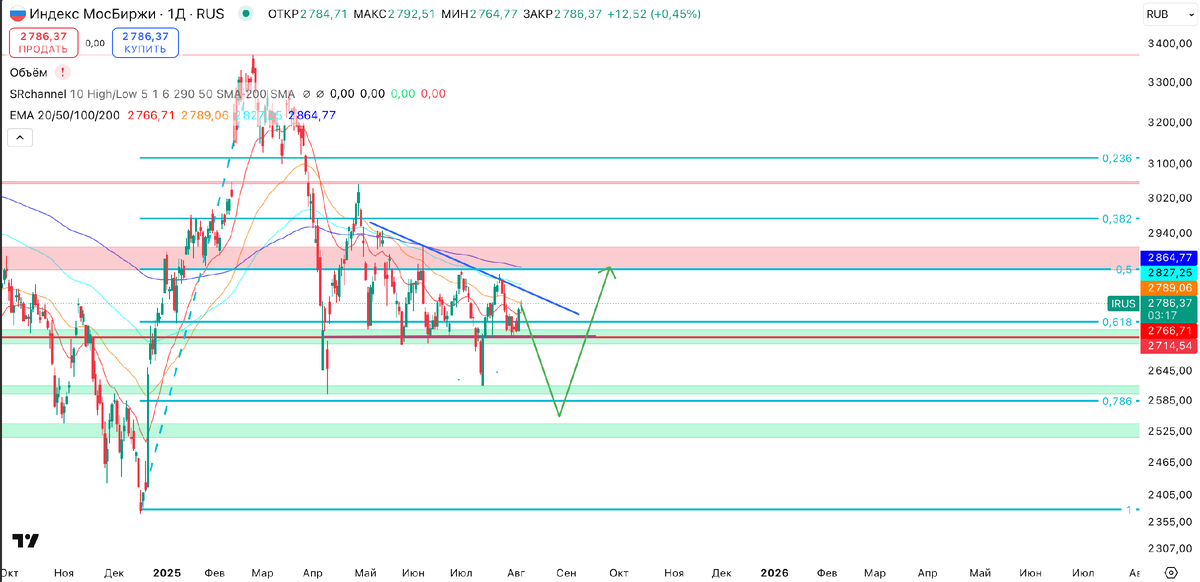 Итог: Треугольник сужается, пробой близко. Следим за 2700 - потеря уровня усилит давление. Вход в позицию - только после уверенного закрепления выше 2827–2864.