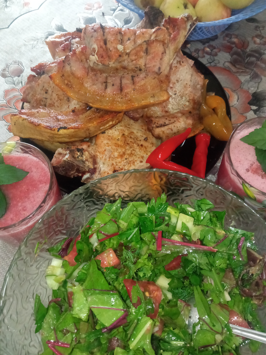 Есть в дачной жизни такая особенная магия. Она живёт не в планах и расписаниях, а в спонтанных порывах. Когда вечер начинает опускаться на яблони, воздух становится прохладным и густым, а душа вдруг тихо так, но настойчиво шепчет: «А не побаловать ли себя чем-то... настоящим?» Именно таким шёпотом и начался наш идеальный ужин. Никаких долгих сборов, никаких заготовок. Только желание, мангал под рукой и осознание, что лучший ресторан сегодня вечером — у нас, под открытым небом. Решено! Короткая вылазка в ближайший магазин, и вот он, трофей — прекрасные, обещающие невероятное удовольствие кусочки мяса на косточке. Священнодействие начинается Дома мясо ждал несложный, но важный ритуал. Промыть под холодной водой, обсушить. Затем — несколько деликатных, но уверенных ударов молоточком. Не для того, чтобы превратить в отбивную, а чтобы просто сказать: «Расслабься, дружок, сейчас будет вкусно». Дальше — классика, которая никогда не подведёт: соль, свежемолотый перец и капелька растительног