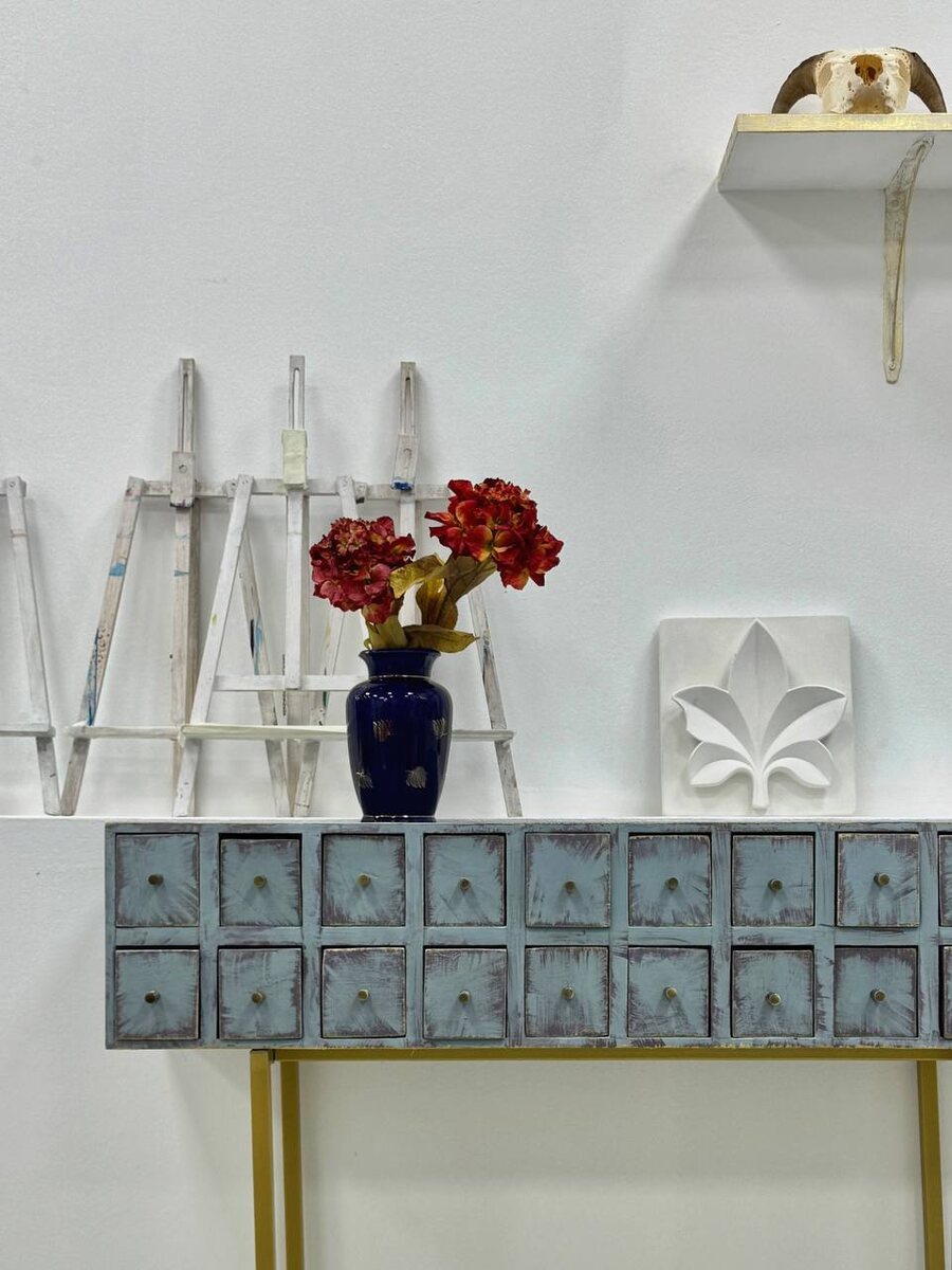 Помните нашу зелёную картотеку? 🕊️💐🕊️ В общем, теперь она совсем другая. Купила для нее подстолье и перекрасила в пыльно-голубой цвет. 💙 Мне кажется, что так гораздо лучше. А вам как? #декорирование #художественнаямастерская