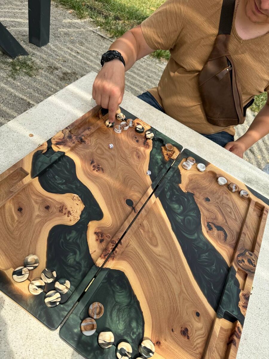 Пожалуйста, сфотографируйте меня, чтобы казалось, что я умею играть. 😂 Кстати, сегодня уехали к своему владельцу в СПБ. #нарды #карагач #каповыйкарагач #эпоксиднаясмола