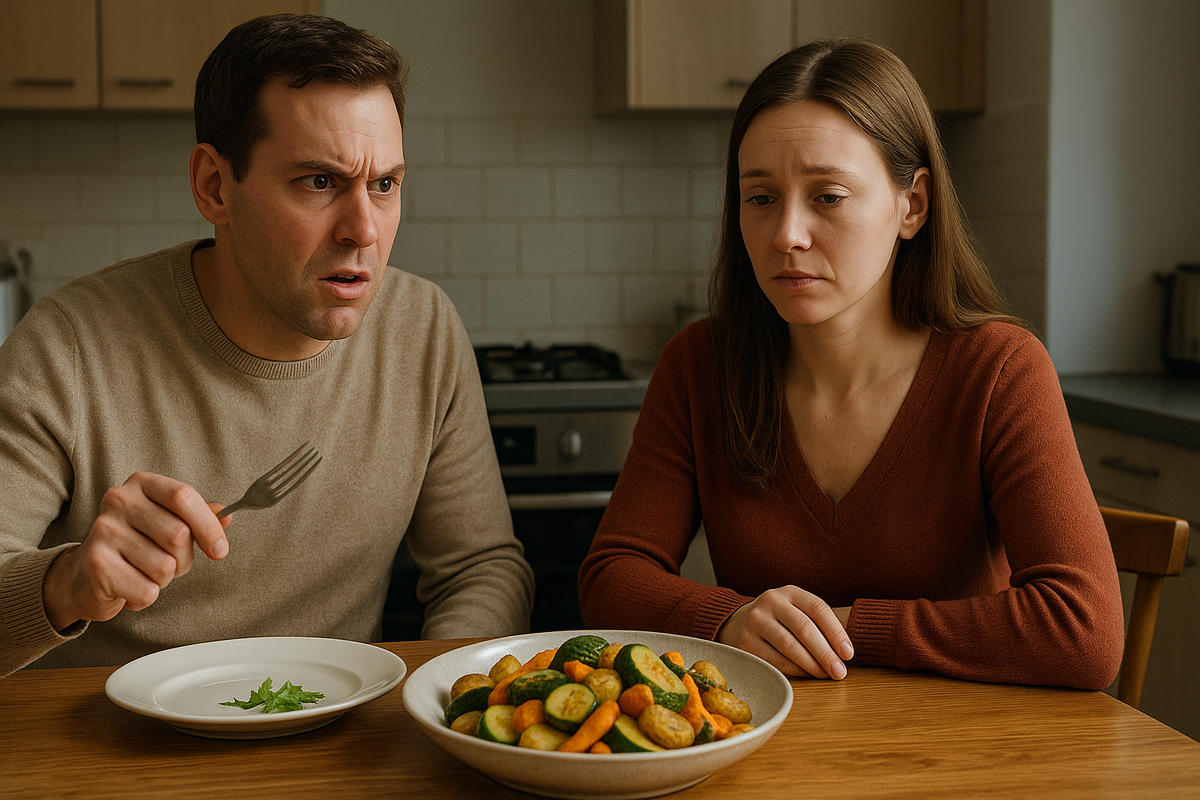 Вечером, после ещё одной порции тушёных овощей с укропом, Артём почувствовал, что предел терпения близок. Он уставился в тарелку с кабачками, на которые уже смотреть было тяжело, и решился: