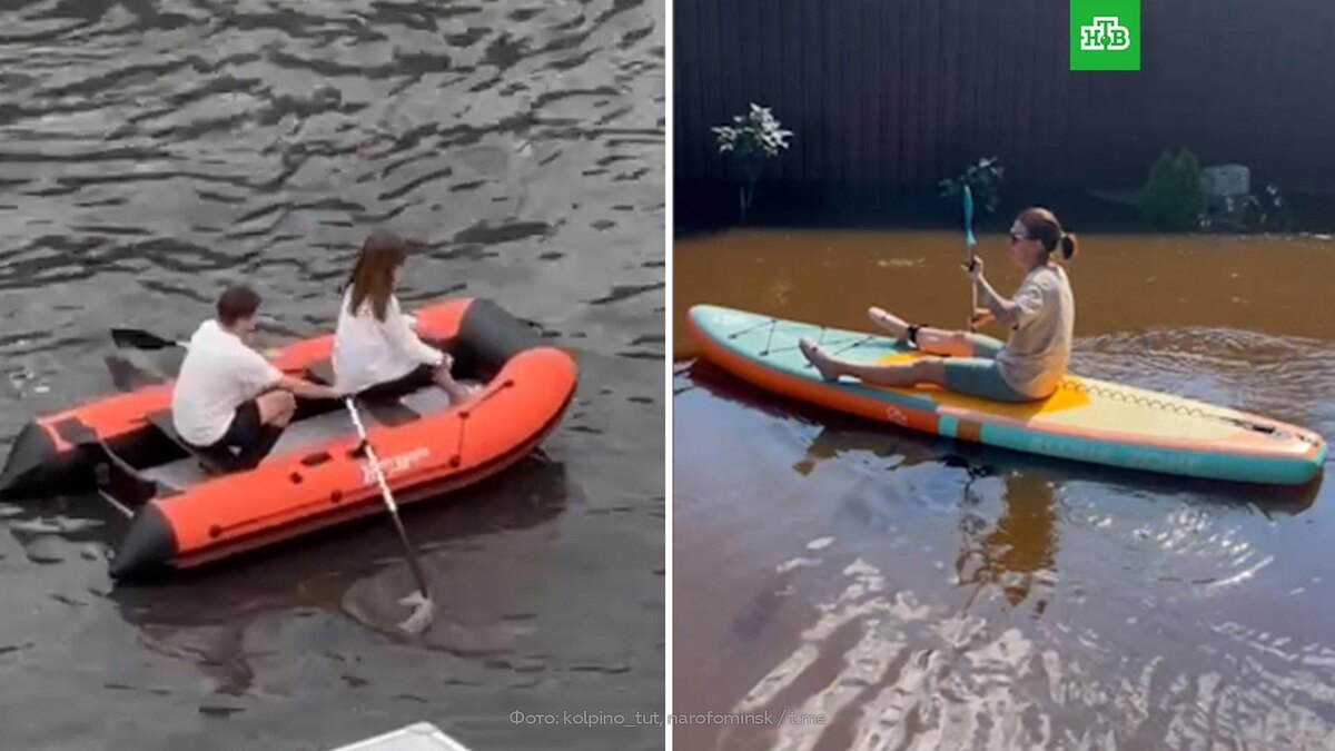 [ Смотреть видео на сайте НТВ ] Подмосковье и Санкт-Петербург затопило после сильных дождей. Волжский циклон принес в Петербург сильнейшие ливни. Улицы города оказались подтоплены и буквально превратились в реки. Где-то проезжая часть на метр ушла под воду. Однако непогода не повлияла на планы некоторых петербуржцев. Жители города пересели из машин в лодки. Накрыли дожди сегодня и Московскую область. В Наро-Фоминске за сутки выпало 97 мм осадков, что сравнимо со 100-литровой бочкой воды на квадратный метр. Как видно на размещенных в Сети видео, пока вода не ушла, местные жители решили устроить заплыв на sup-досках. [ Смотреть видео на сайте НТВ ]
