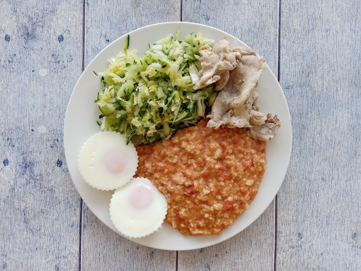 Люблю сырники, готовлю часто. Всегда получаются вкусные и не расползаются. В комментариях часто спрашивают рецепт моих сырников, я периодически кому-то отвечаю. Решила написать статью для всех. Поделиться своим рецептом и тонкостями приготовления. Приветствую вас. Я — Анна. Мне 44 года. Худею с веса 130 кг. Сбросила 38 кг за полтора года. Худею на подсчёте калорий и балансе БЖУ. Присоединяйтесь). Вчерашние тарелочки. Завтрак. Овсянка с томатами, филе бедра отварное, салат из огурца и пекинской капусты и яйца. Яйца в силиконовых формах для кексов готовила. Обед. Сырники со сметаной, сгущёнкой и малиной и кофе. Ужин. Нут с овощами и куриные рубленые котлеты. Котлеты не жарила, готовила в пароварке, потому что жиров уже перебрала). Купила мелкие местные яблоки — в течение дня съела 3 яблока. КБЖУ. А теперь сырники. Этот рецепт я скорректировала с учётом похудательных реалий). У меня стояла задача уменьшить калорийность без потери вкуса. Что понадобится: Как готовить: Творог. Творог должен