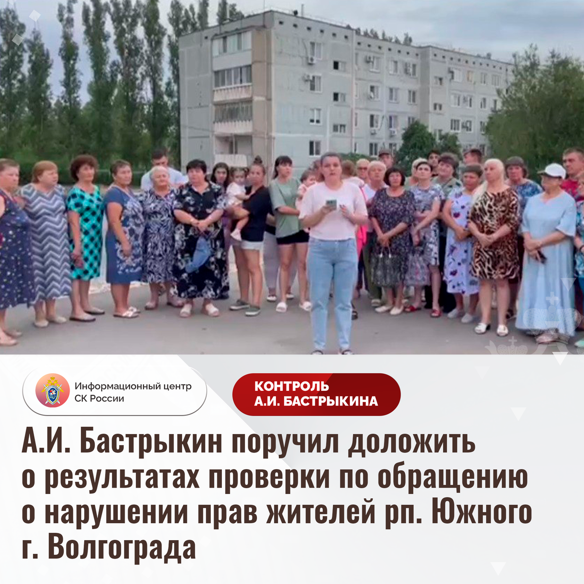 А.И. Бастрыкин поручил доложить о результатах проверки по обращению о нарушении прав жителей рп. Южного г. Волгограда