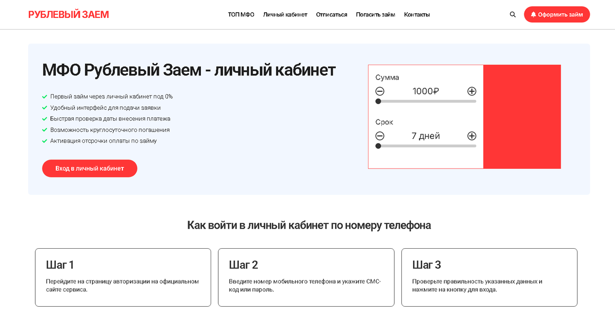 Регистрация в личном кабинете Рублёвый Заём