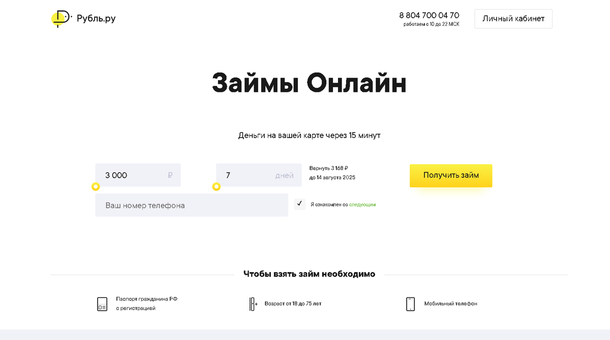 FAQ по личному кабинету Рубль.ру и оформлению микрозаймов