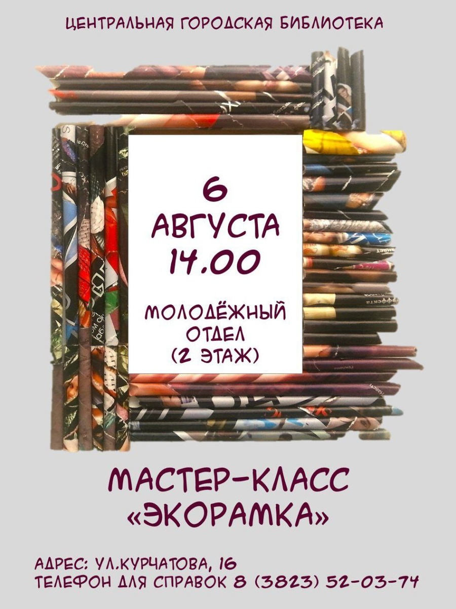 Новая жизнь старых вещей 6 августа в 14.00 в молодежном отделе состоится мастер-класс, где превратят ненужные материалы в стильный и функциональный предмет интерьера – фоторамку из вторсырья. Этот мастер-класс – не просто способ создать уникальную вещь своими руками, но и возможность внести свой вклад в сохранение окружающей среды, научиться видеть красоту в простом и привычном. Вы узнаете, как подготовить материалы, какие инструменты использовать и как воплотить в жизнь свои самые смелые дизайнерские идеи. Мастер-класс подойдет для людей любого возраста и уровня подготовки. Все необходимые материалы и инструменты предоставляются. Вам потребуется только ваше хорошее настроение и желание творить. Телефон для справок: 8(3823) 52-03-74. #СеверскАфиша