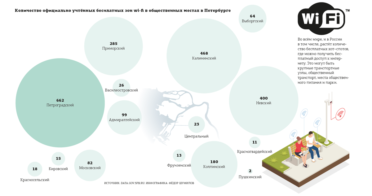 "Мы видим его развитие прежде всего в парках, на набережных, в кластерах отдыха, на уличных площадках, в общественных пространствах, в медицинских и учебных учреждениях — там, где человек проводит много времени. Спрос на стабильный и быстрый wi–fi на такой территории есть. Городу есть куда развиваться в этом плане, так как на сегодня wi–fi охватывает неполную часть публичных зон. Развитие wi–fi может стать важным шагом к доступной цифровой среде и “умному городу”, — говорит участник рынка. — В целом публичный wi–fi — это не про замену мобильной связи, а про создание комфортного и обладающего цифровой доступностью города. У Петербурга в этом плане огромный потенциал. Главное — подходить к этому не как к раздаче интернета, а как к развитию городской инфраструктуры нового уровня".