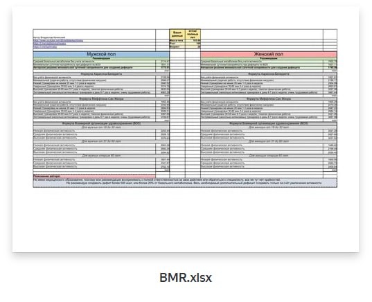 Ну теперь ты точно знаешь как рассчитать свой дефицит, ну или как минимум узнать свою норму калорий, скачивай и используй данную таблицу