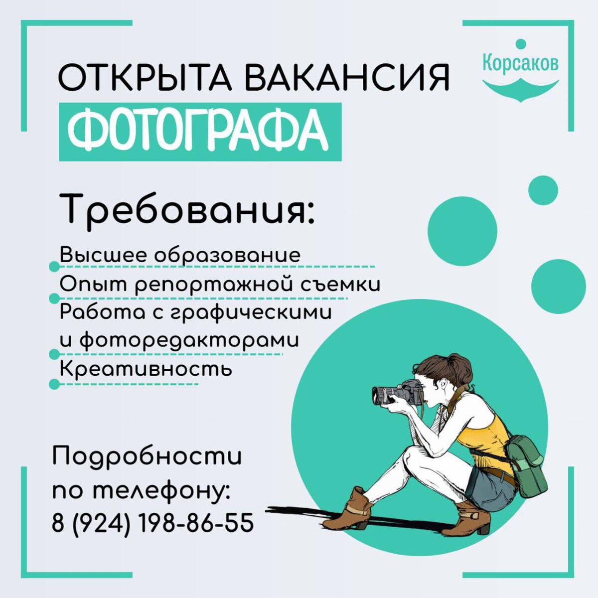 ПРЕСС-СЛУЖБА В творческую команду требуется не менее творческий сотрудник! 📸 Основная задача - создание качественного фотоконтента! Дополнительные требования: ✳️умение работать в команде; ✳️стрессоустойчивость; ✳️коммуникабельность. Со всеми вопросами и резюме: ©️8-924-198-8655©️