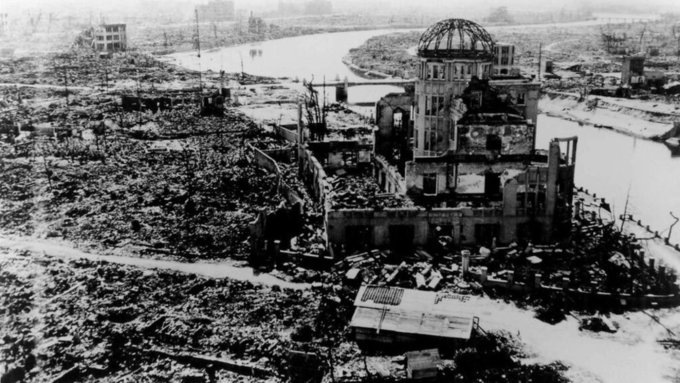 Жуткие кадры первого в истории случая боевого применения ядерного оружия Утром 6 августа 1945 года американский бомбардировщик сбросил на японский город Хиросиму атомную бомбу с безобидным названием Little Boy ("Малыш"). Это был первый в истории человечества случай боевого применения ядерного оружия. Бомба разорвалась на высоте около 400-600 метров. Большая часть людей, находившихся на расстоянии 800 метров и меньше от эпицентра, погибли. Световое излучение вжигало темные рисунки одежды в кожу и оставляло силуэты человеческих тел на стенах. Общее количество погибших, с учетом умерших от рака и других долгосрочных воздействий взрыва, достигло в конечном счете около 200 тысяч человек. Через три дня, 9 августа, атомная бомба была сброшена на Нагасаки, здесь по истечении пяти лет общее количество погибших достигало 140 тысяч. 15 августа Япония объявила о своей капитуляции. Обе бомбардировки рассматриваются как заключительный этап Второй мировой войны, хотя об их целесообразности и необходи
