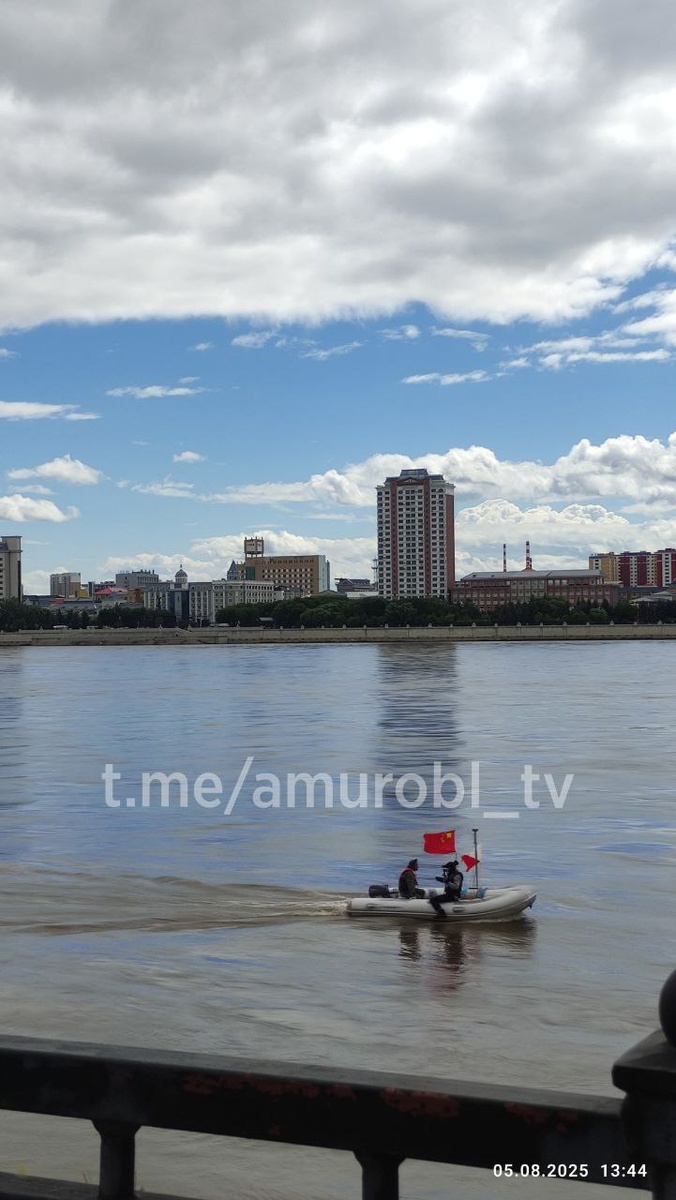 Накануне на набережной Благовещенска заметили пиратов Карибского Амурского моря 😄 Интересно, что житель Поднебесной делал на лодке возле нас?..🤔 Что снимал?.. Фото #АОТВ
