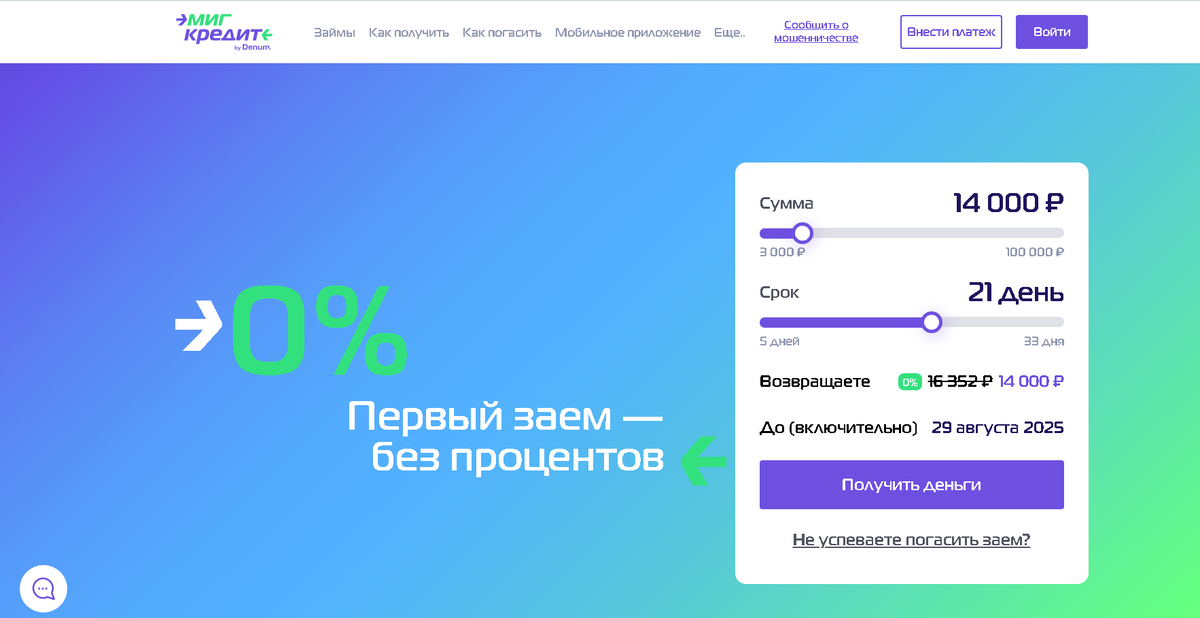 Онлайн-займы в Миг Кредит