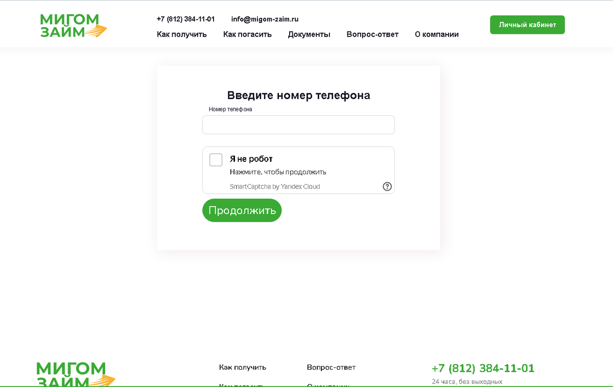 Как войти в личный кабинет Мигом Займ