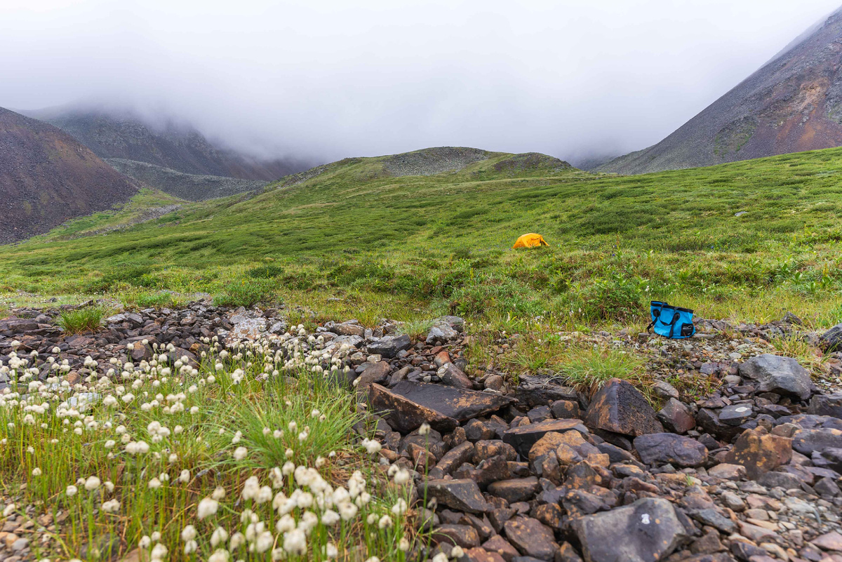 Наш поход на Шумак. День 3. 21 июля 2025 Утром, взглянув в «окно» палатки, я почувствовал лёгкую грусть — чуда не произошло, погода испортилась окончательно. Мы проснулись в мрачном, сыром облаке, и выходить совсем не хотелось. Но нужно было двигаться: на Шумаке отдыхать в палатке куда приятнее, чем на озере, окружённом комарами. Привели себя в порядок, собрали вещи, позавтракали и около 9 утра отправились в путь. Дождя, к счастью, не было, но плотный туман скрывал все виды и солнце. Ночь выдалась холодной — всего около +5. Этот участок пути один из моих любимых: здесь уже другая погода, другой пейзаж, но всё те же зелёные холмы и цветущие поляны. Правда, коров тут нет — они не уходят за перевал. Незаметно мы вышли к красивейшему Шумакскому водопаду — настолько прекрасному, что от него невозможно оторвать взгляд. И знаете, что произошло в этом месте? Случилось чудо, которого мы уже и не ждали: туман начал рассеиваться, выглянуло солнце, и перед нами открылось синее небо. Какое же это