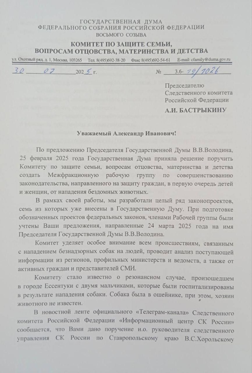 Депутат Останина открыто встает на сторону преступников, которые намеренно, жестоко, с особым цинизмом и на глазах у детей расправились с безобидной собакой? Потом признавались в этом в соцсетях, преподнося преступление как подвиг и говоря, что я рад, что собака мучилась? Ерничали над детьми, на чьих глазах совершили жестокую расправу? Ворвались в ветклинику с требованиями убить недобитую ими собаку? Останина выкатила пост, что она отправила письмо в СК с просьбой наказать людей, которые взялись помочь несчастному умирающему животному и теперь хотят добиться справедливого наказания для преступников. Преступников, которые после огласки, стали везде жаловаться, что им де бедным, несчастным устроили травлю. По факту совершено жестокое преступление по ст.245 — собаку убивали прилюдно в присутствии несовершеннолетних из хулиганских побуждений садистскими методами. На сегодняшний день возбуждено уголовное дело по ч.2 ст. 245 УК РФ. Что же касается травли, про которую Бастрыкину пишет Ост