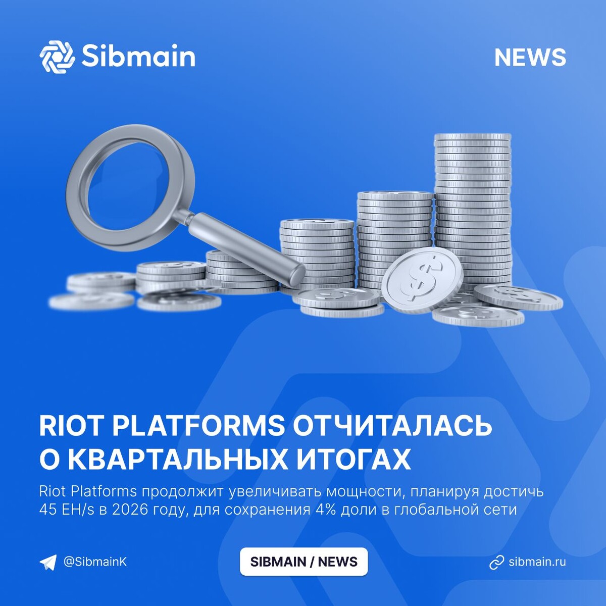 📰📰📰📰 ➡️Riot Platforms отчиталась о квартальных итогах Компания Riot Platforms отчиталась об итогах деятельности за II квартал 2025 года. Результаты Riot Platforms: ⏺Хешрейт оборудования - 35,4 EH/s; ⏺Себестоимость добычи BTC - $48 992; ⏺Добыто - 1 426 BTC; ⏺Биткоин-резерв - 19 287 BTC 📍Riot Platforms продолжит увеличивать мощности, планируя достичь 45 EH/s в 2026 году, для сохранения 4% доли в глобальной сети
