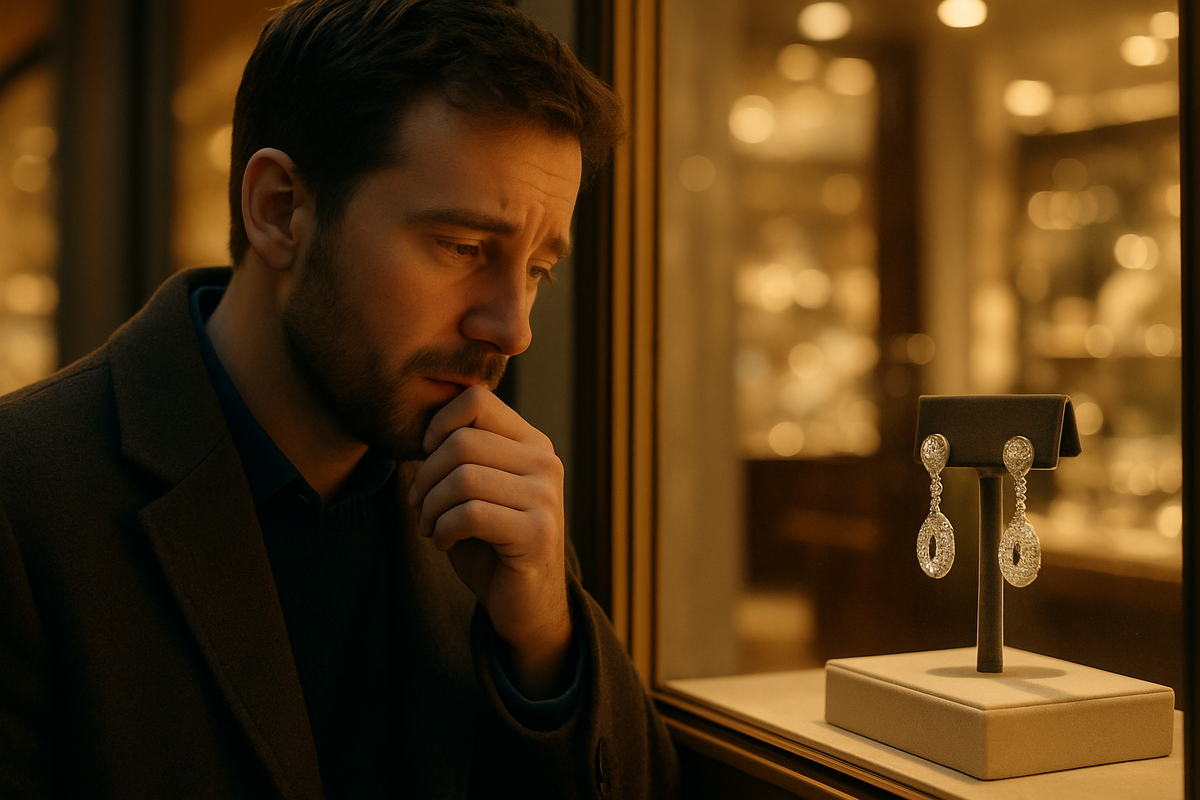 Продавщица, изысканная дама с безупречным макияжем и серебристыми волосами, уложенными в элегантную причёску, внимательно изучила его лицо. Она видела сотни мужчин, стоявших перед витриной с таким же выражением смятения между желанием и разумом.