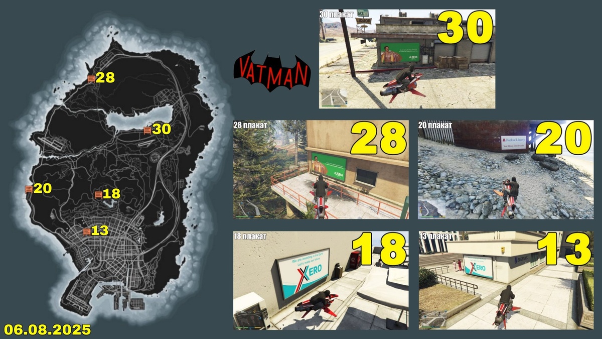Расположение плакатов в GTA Online на сегодня (6 Августа) ☀